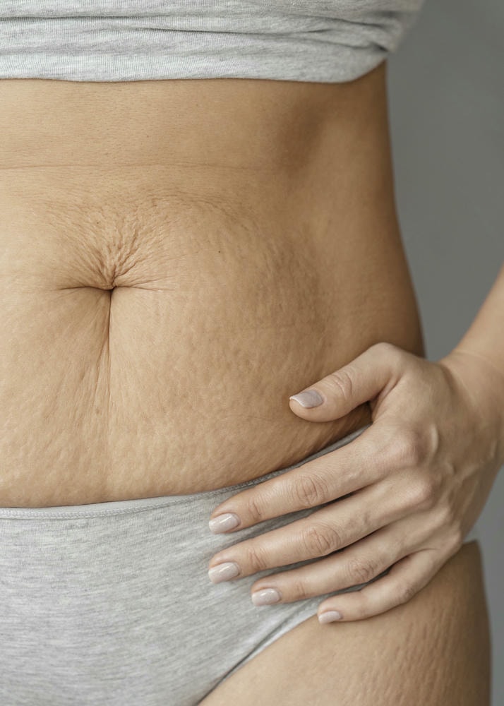 - Dưỡng ẩm vùng dễ rạn: Bụng, đùi, mông, ngực và bắp tay nên được chăm sóc đều.