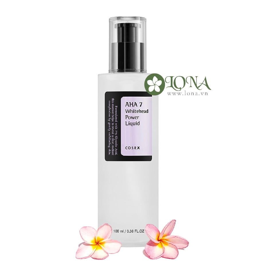 Cosrx AHA 7 Whitehead Power Liquid là lựa chọn hiệu quả để xử lý mụn đầu trắng ở vùng mũi, trán hay cằm, đồng thời làm mịn bề mặt da. Sản phẩm có công thức dịu nhẹ giúp loại bỏ tế bào chết, bã nhờn và bụi bẩn cùng các chất ô nhiễm gây tắc nghẽn lỗ chân lông.