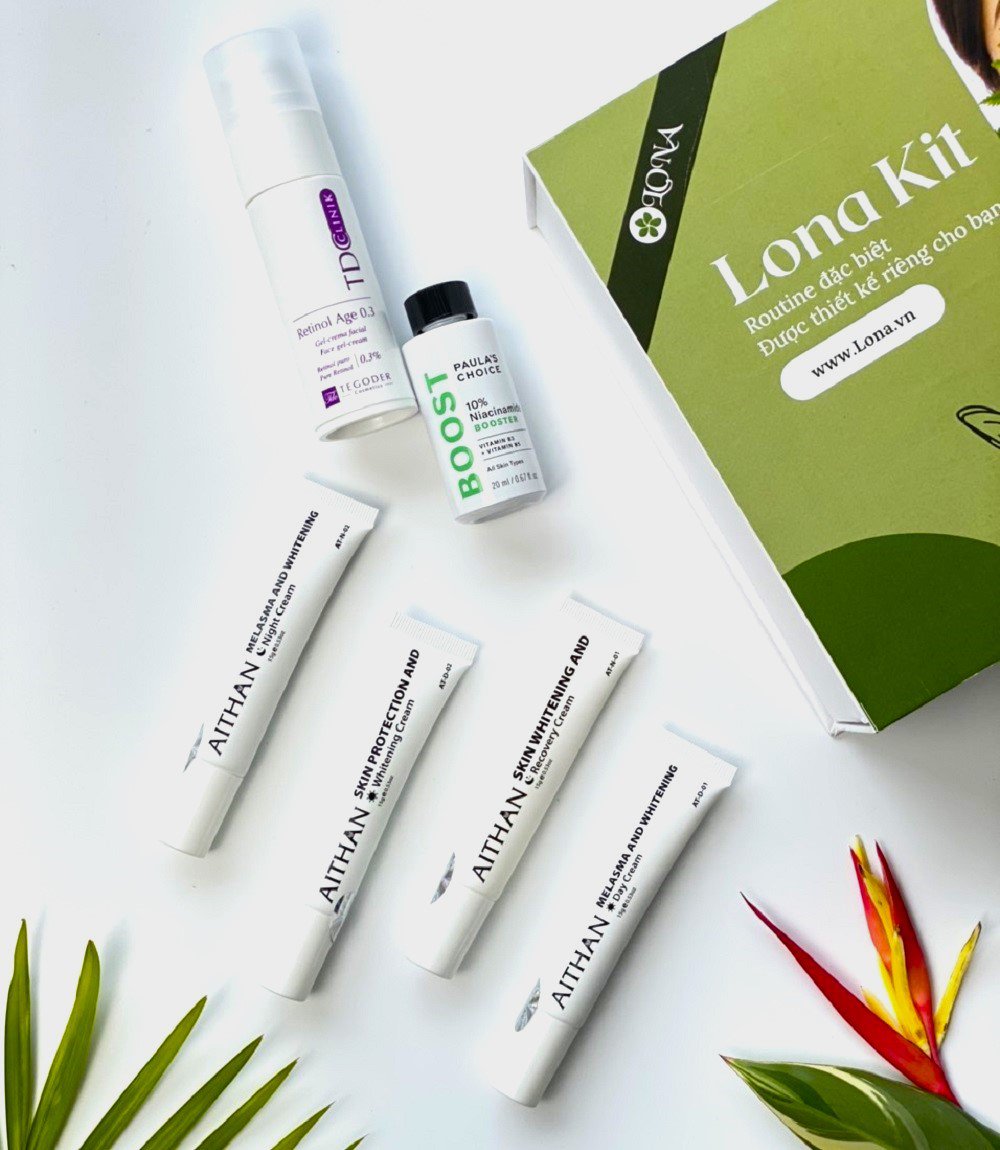 Lona Kit 2 là lựa chọn khởi đầu hợp lý. Sản phẩm kết hợp nhiều thành phần hỗ trợ làm sáng, giảm stress oxy hóa trên da như vitamin C, arbutin, vitamin E và hyaluronic acid để duy trì độ ẩm. Bên cạnh đó, kit cũng bao gồm hexylresorcinol như một thành phần then chốt. Mục tiêu ban đầu khi trị nám là loại bỏ những mảng da sạm do tế bào thượng bì bị tổn thương. Để làm sạch lớp sừng này, các axit tẩy tế bào hóa học như lactic acid thường được sử dụng vì chúng giúp bong tế bào chết nhẹ nhàng, tạo điều kiện cho các hoạt chất khác thấm vào hiệu quả hơn.