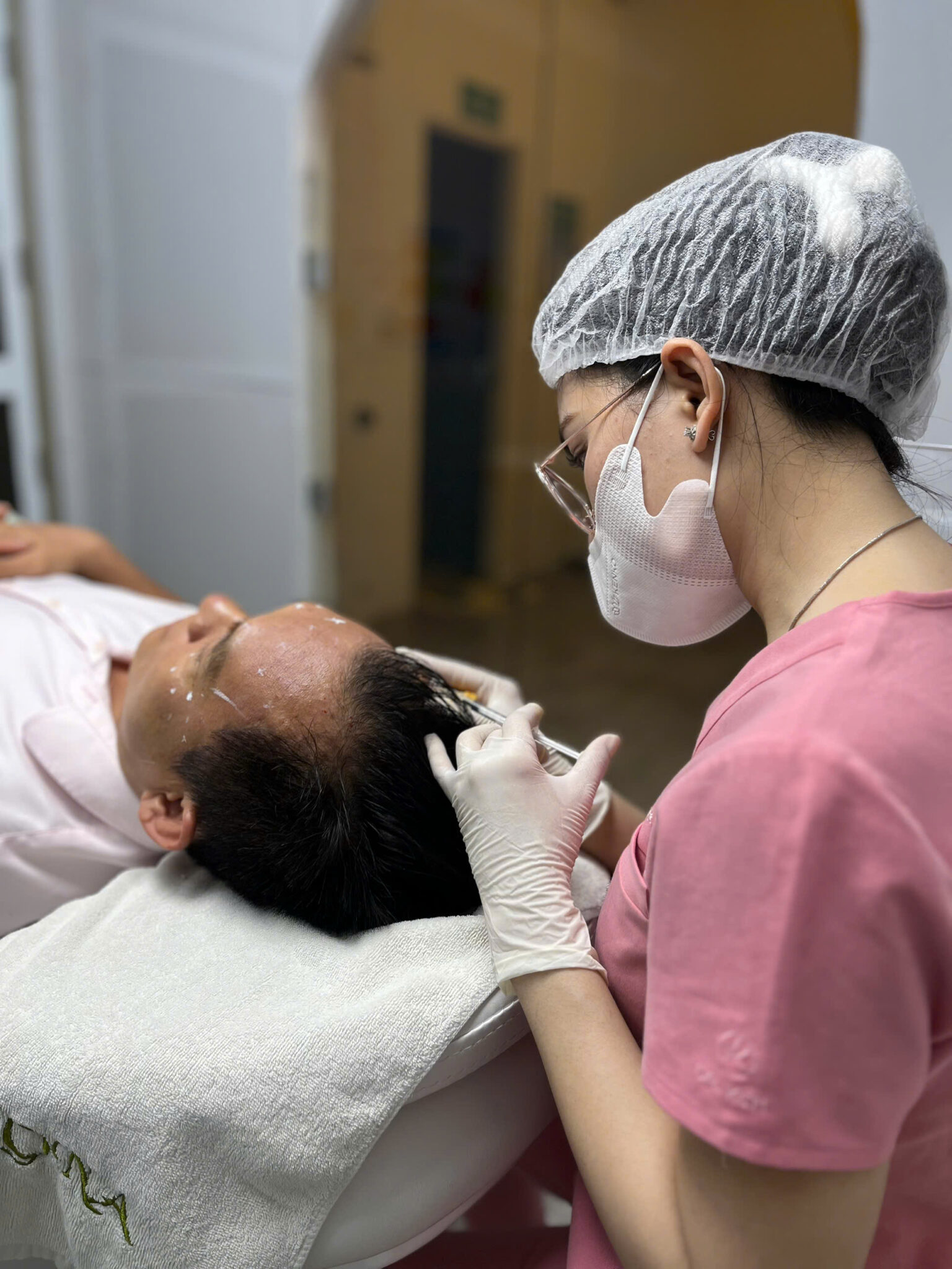 Hình ảnh minh họa cho liệu pháp các liệu pháp - bước meso, nội dung ảnh: Meso tóc 01. L‑cystine là dạng dimer của L‑cysteine, gồm hai phân tử nối với nhau bằng cầu disulfide. Trong sinh lý cơ thể, hai dạng này có thể chuyển hóa tùy theo trạng thái oxy hóa – khử. Các chế phẩm viên uống l cystine hướng tới mục tiêu bổ sung lưu huỳnh để hỗ trợ cấu trúc keratin ở tóc và móng. NAC (N‑acetylcysteine) là dẫn xuất khác của cysteine được sử dụng trong y học với mục đích riêng, không đồng nhất với vai trò làm đẹp của L‑cystine dạng viên.