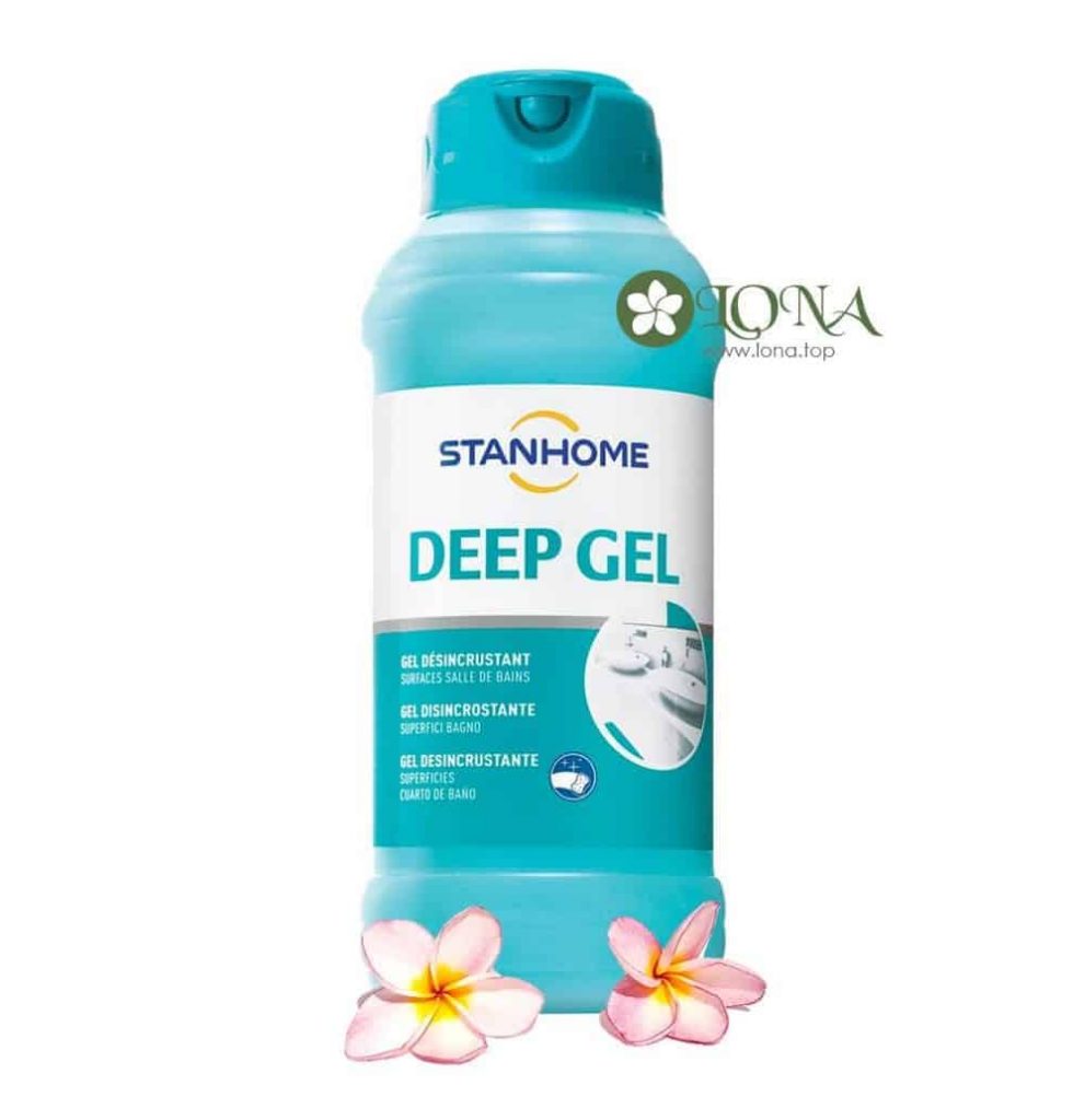 - Deep Gel Stanhome giúp loại bỏ vết bẩn, cặn bám, nước cứng trên bề mặt tráng men (bồn tắm, bồn rửa mặt, tường nhà tắm, sàn nhà tắm…) và trên bề mặt inox (vòi hoa sen, vòi inox).